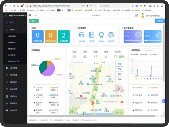计算、异常报警、多媒体节目单远程管理、站牌线路维护管理、实时监控等功能。